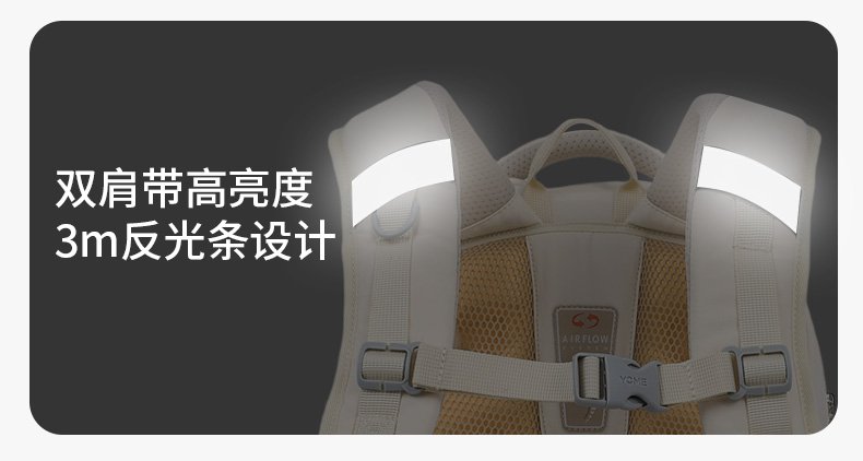 8. Ergonomic S-shaped padded shoulder straps with reflective material to enhance visibility and safety.